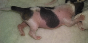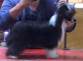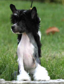 Rissie is part of a stunning litter sired by GCH Zen's Cirque du Soleil with dam CH Creekside's Party in the USA. Rissie has a loving and pleasant personality with lots of energy and pizzazz and curiosity and is destined to follow in her daddy's footsteps. Born July 17, 2014, Rissie is a beautiful black and white hairless with striking markings. Her littermates include Elizabeth, who makes her home in South America!