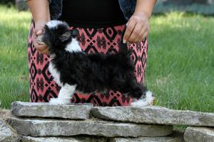 Elsa is the littermate to Paris, Dazzle and Chase. Born on July 5, 2014, she makes her home in Wildwood, Missouri. Elsa spends a lot of time at her owner's grooming salon where she delights and entertains the clientele. Elsa is a tiny little thing and looks perfect with her 7 year old owner/handler Kaitlin.